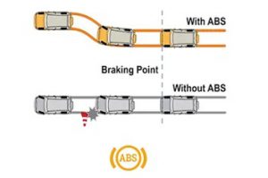 The ABS system prevents skidding during braking, allowing steering control. EBD and BA further optimize braking performance.