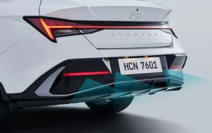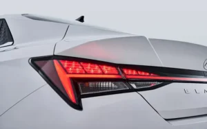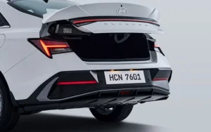 The front of the Hyundai ELANTRA commands attention with its bold, confident stance. The wide, cascading grille merges seamlessly with sharp, angular headlights, creating a striking face that exudes power and sophistication. The stereoscopic parametric jewel-pattern design highlights the depth of the front grille, making it resemble diamond-cut gemstones, and the bold and elongated front headlights come together to give the car its front sporty look. This design isn’t just about aesthetics—it’s engineered for aerodynamics, making the ELANTRA as efficient as it is stunning.