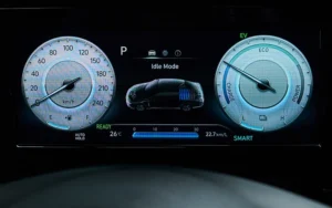 The ELANTRA’s front seats are leather-trimmed, heated, and ventilated for all-season comfort, while the power-adjustable driver’s seat with lumbar support ensures an ergonomic fit. Spacious rear seats offer generous legroom, and the use of eco-friendly materials complements the car’s commitment to sustainability. The soft-touch finishes create a refined, cozy environment, making each drive luxurious and environmentally conscious.