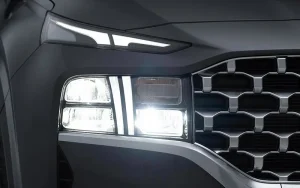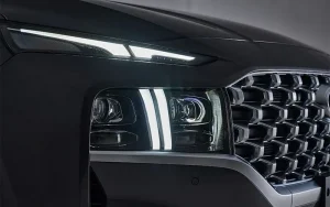 Experience the commanding presence and opulent design of the SANTA FE, radiating power, sophistication, and prestige. Its expansive cascading grille, complemented by the distinctive T-shaped LED daytime running lights, forms a breathtaking spectacle. The enduring touch of refinement and luxury leaves an indelible mark on the road.